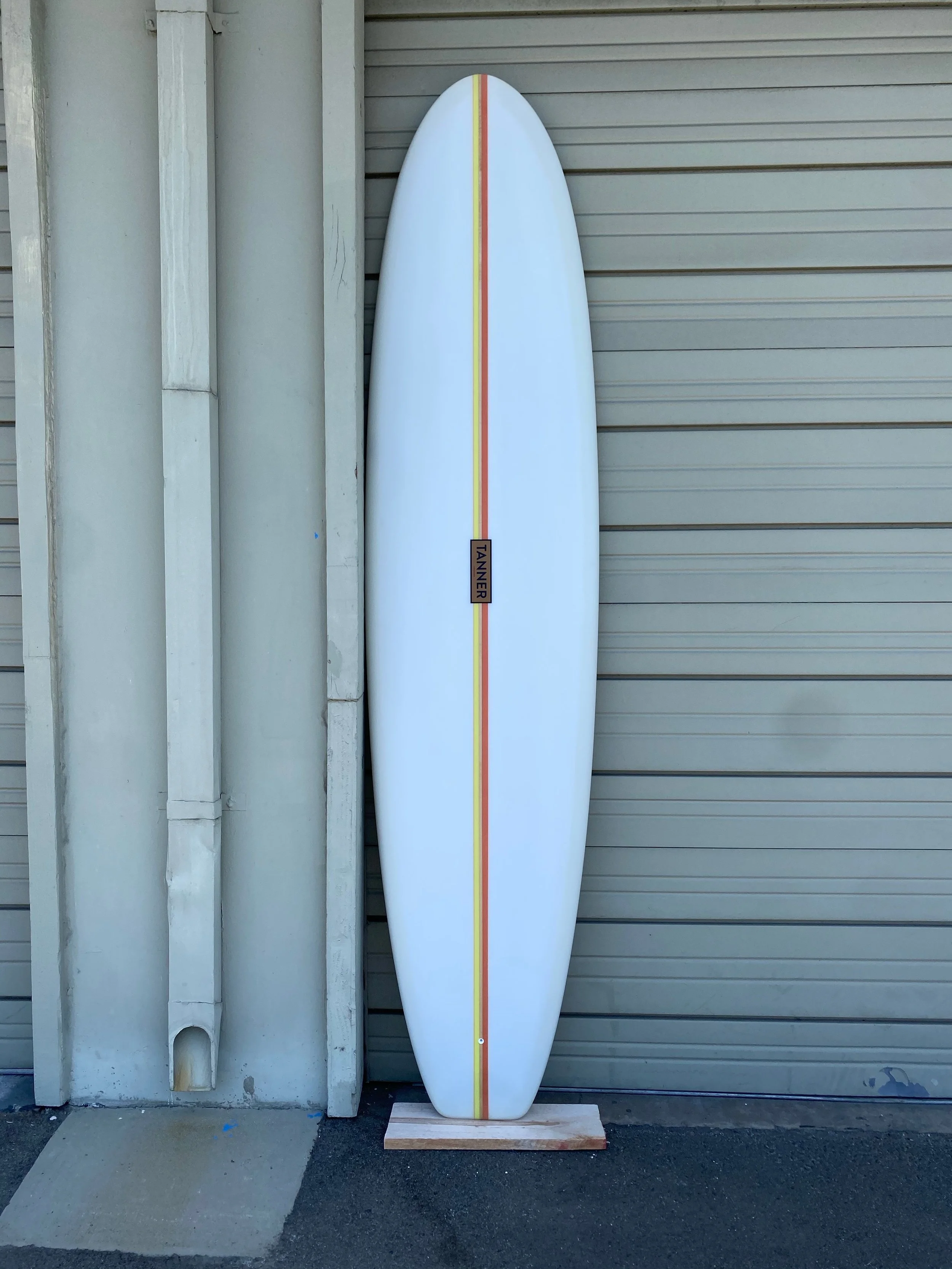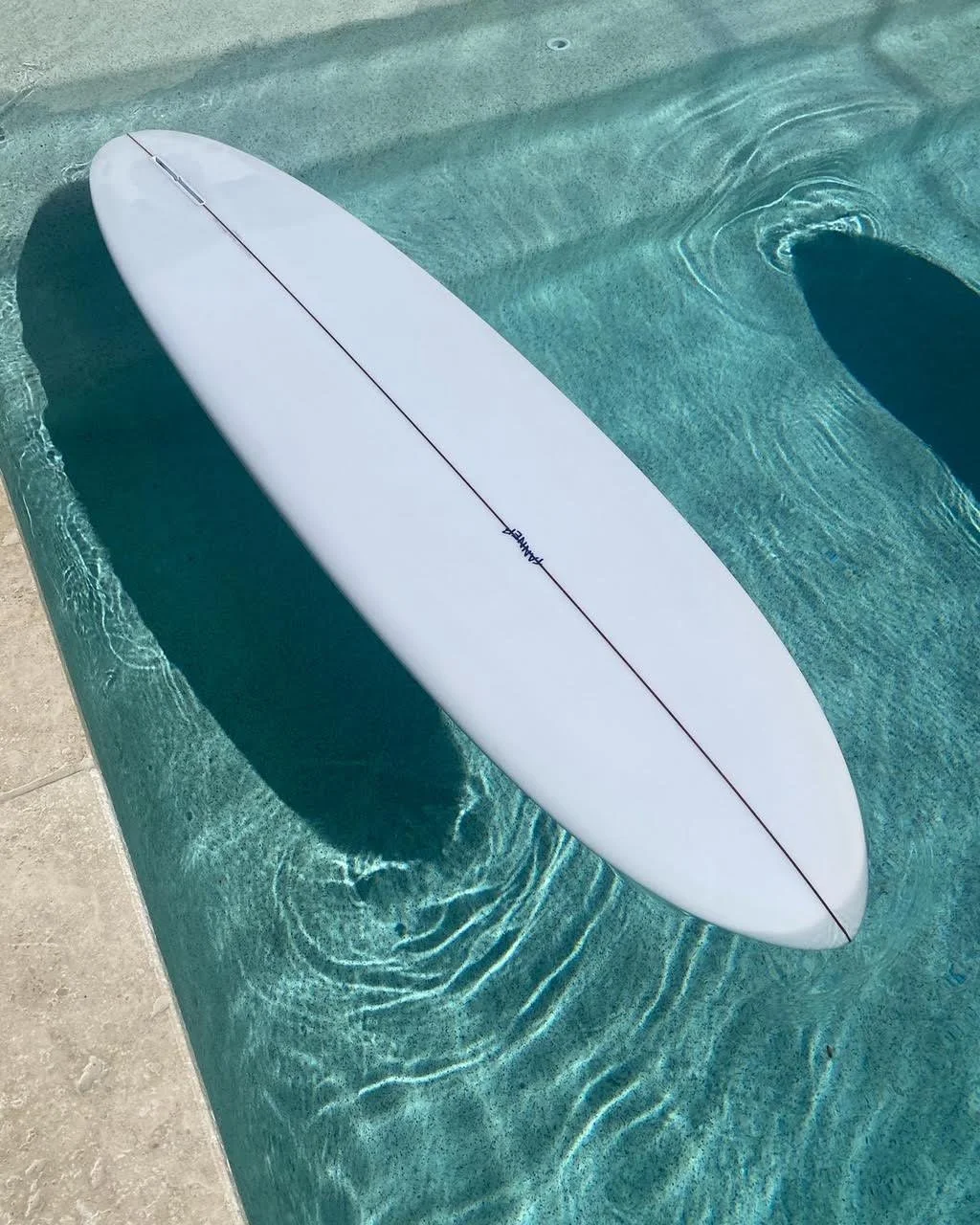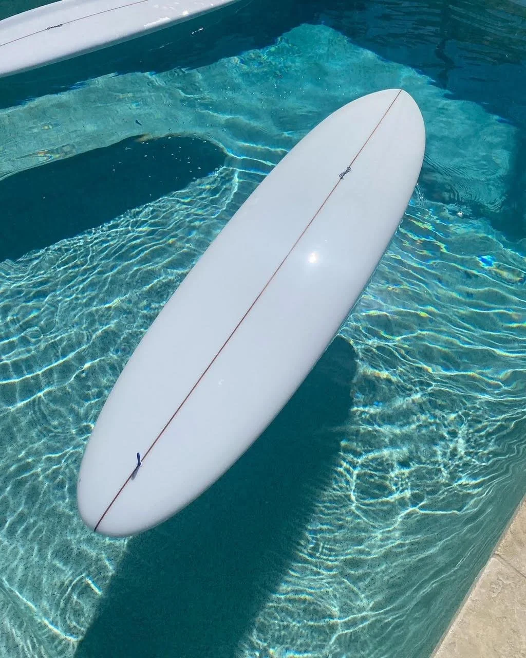 The Luna model is my version of a traditional noserider. Nose concave, parallel rail, wide point aft of center, and tail kick work simultaneously to provide lift and a steady platform when on the nose. Everything is blended in a way to not compromise trim when on the center of the board. Take a step back and the tail kick allows you to pivot from rail to rail. Comes standard with a t-band stringer and volan. Glass on fin optional. Starts at $1590.